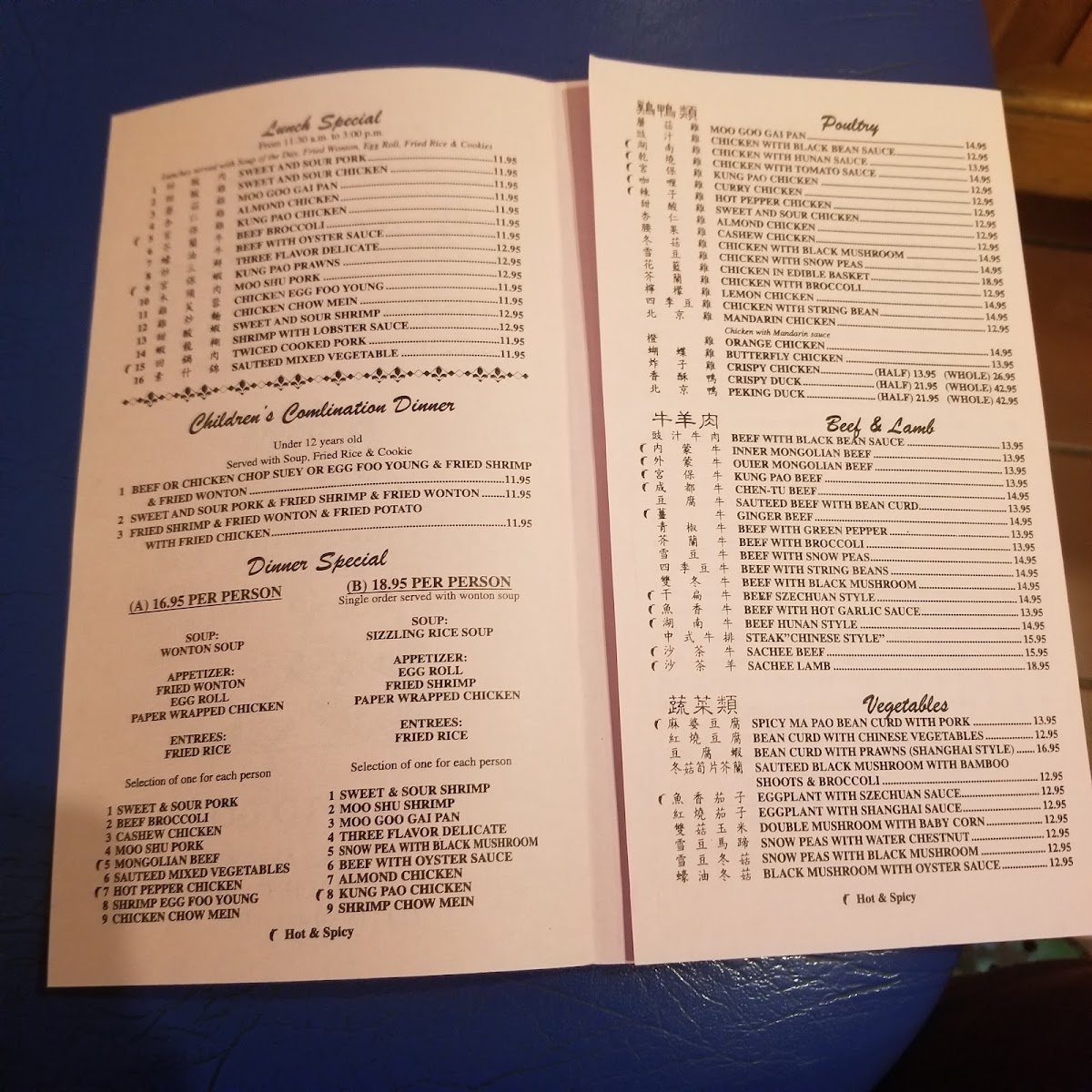 Typical choices range from warm starters like Wonton Soup and Egg Flower Soup to hearty mains such as Moo Shi Pork, Kung Pao Tofu, and Imperial Walnut Shrimp. The menu supports both sharing-style meals and solo visits, with dishes that satisfy different cravings, from savory stir-fries to lighter vegetable-based options.